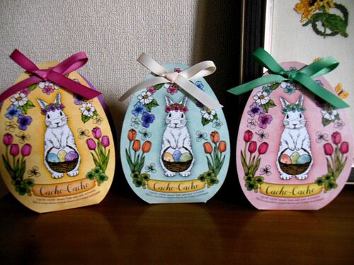 今年のイースターは、4月1日の様です。 イースターというのは、なんとなく春めいた感じで好きです。 毎年、クロスステッチの飾りを出して楽しむのですが、新しい作品がなかなか作れないので、ウサギや卵のデザインのお菓子などを買って一緒に飾ります。 今…