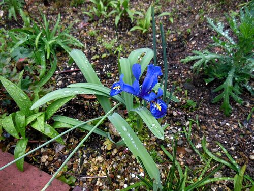 ミニアイリスが咲いています。 ミニアイリスは、何年か前に小球根のセットに入っていたもので、気に入っていたので、増えて欲しいと思い地植えにしたのですが、消えてしまったのかと思っていました。一輪だけですが、久し振りに花をつけて、とても嬉しいです…