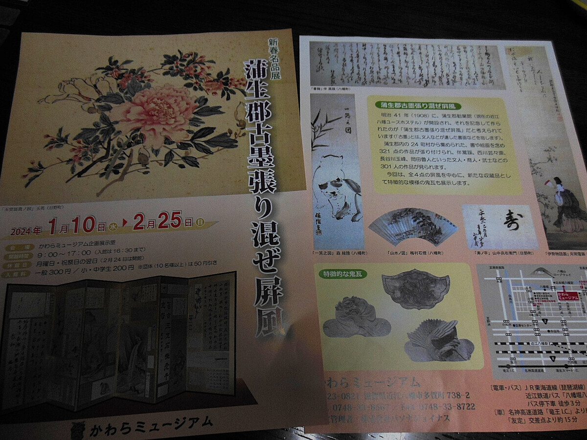 先日、近江八幡の「かわらミュージアム」へ、「蒲生郡古墨張り混ぜ屏風展」を見に行きました。